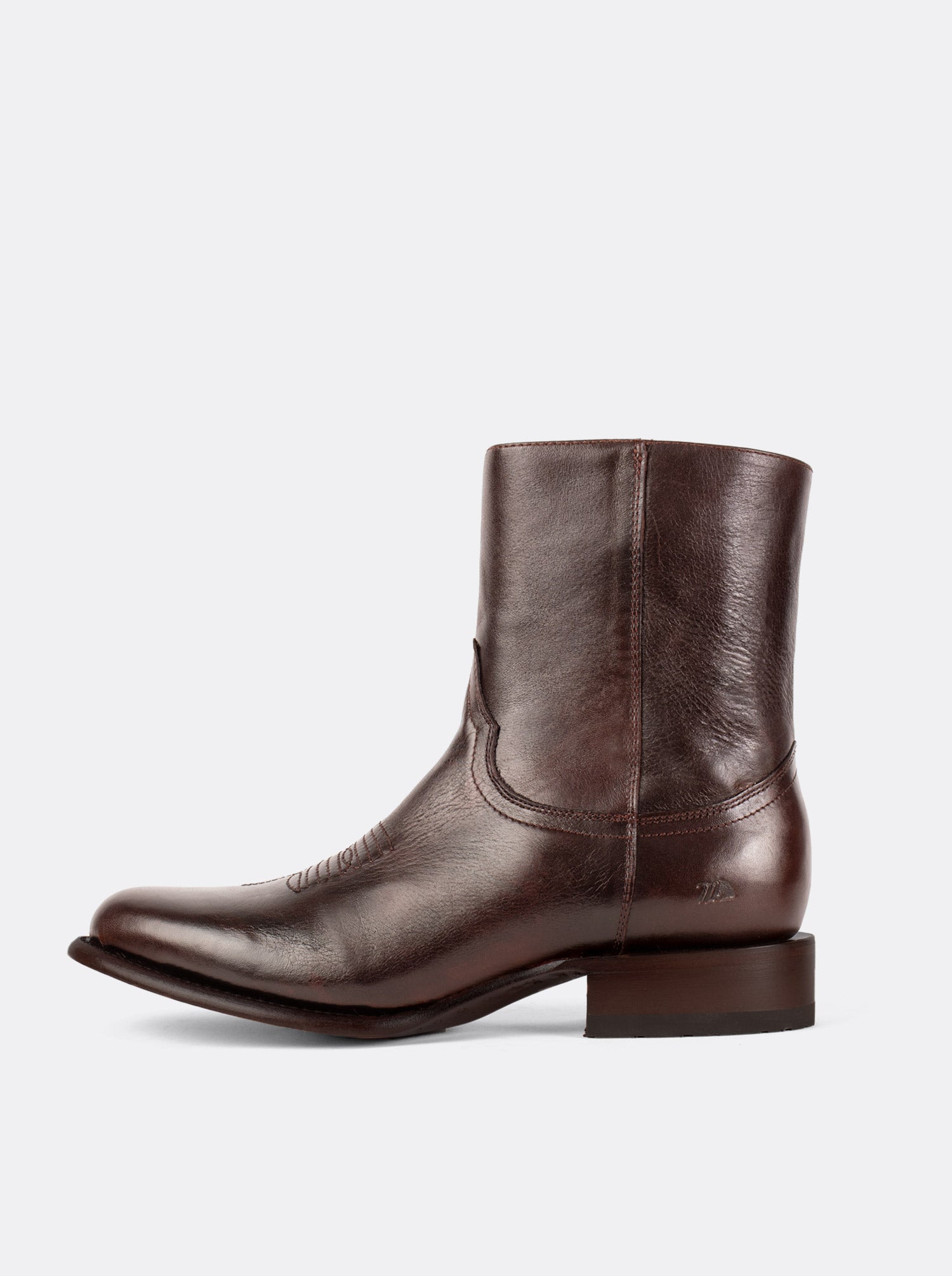 Men's Leather Cowboy Zip Ankle Boot Brown Olmeca Style 11200